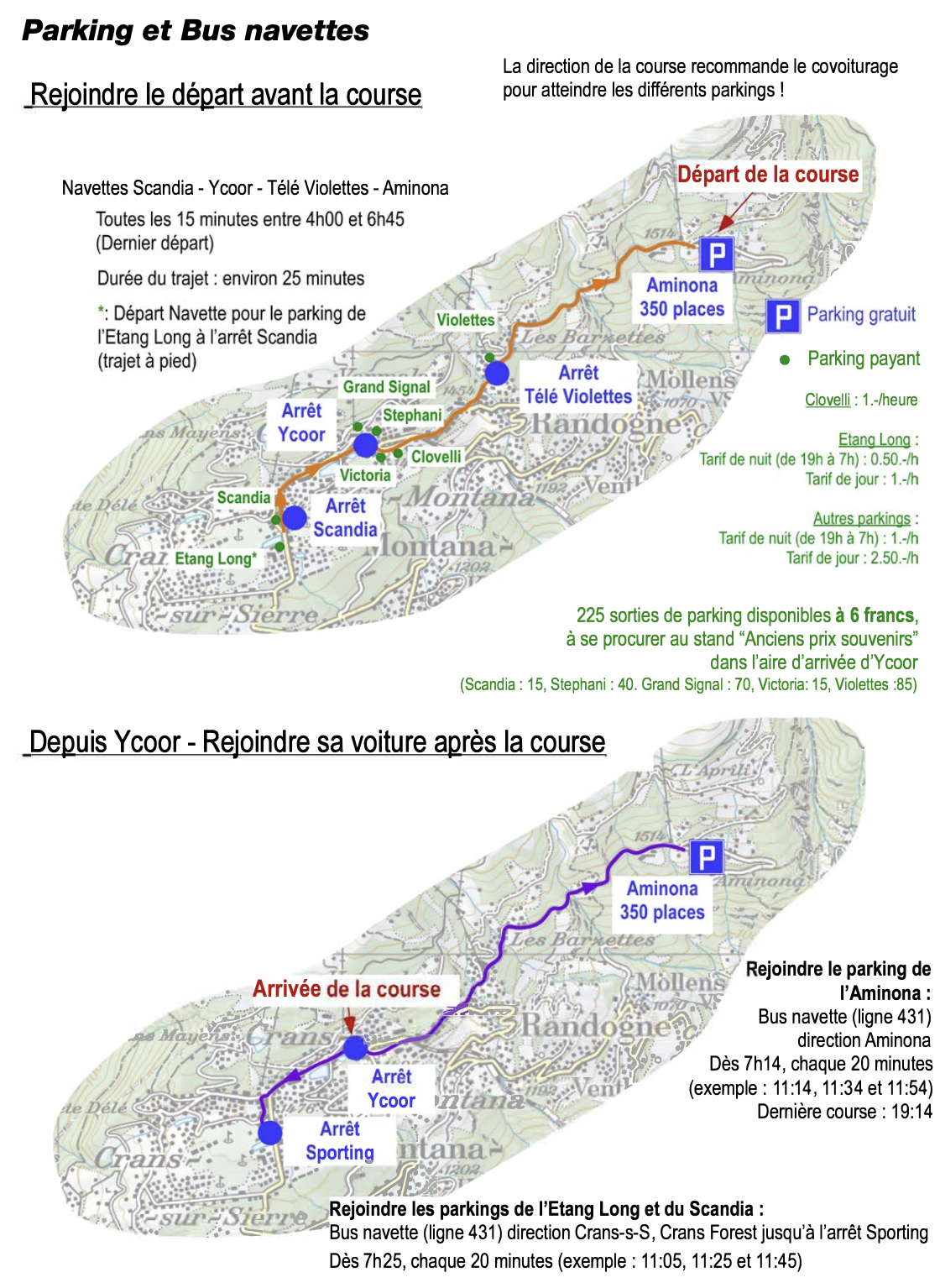 Les parking de la station sont à votre disposition. Vous devrez ensuite prendre une navette, circulant chaque 20 minutes aux arrets suivants (et seulement à ceux-ci!) : Scandia, Ycoor, Télé Violettes. Voir plan ci-dessous.